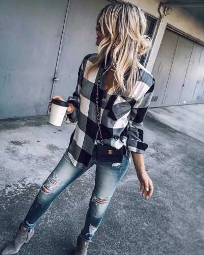 Так, якщо ви хочете створити ансамбль на кожен день, ви завжди можете звернутися до картатої сорочки в поєднанні з джинсами скінні. Під такий сет досить надіти кросівки або кеди, доповнити його рюкзаком і, приміром капелюхом, і стильний образ для прогулянки з друзями по місту або походу в магазин готовий. Втім, це далеко не єдине комбо для повсякденності. Картату сорочку ви завжди можете замінити джинсовою, а замість скінні надіти джинси кльош або бойфренди.